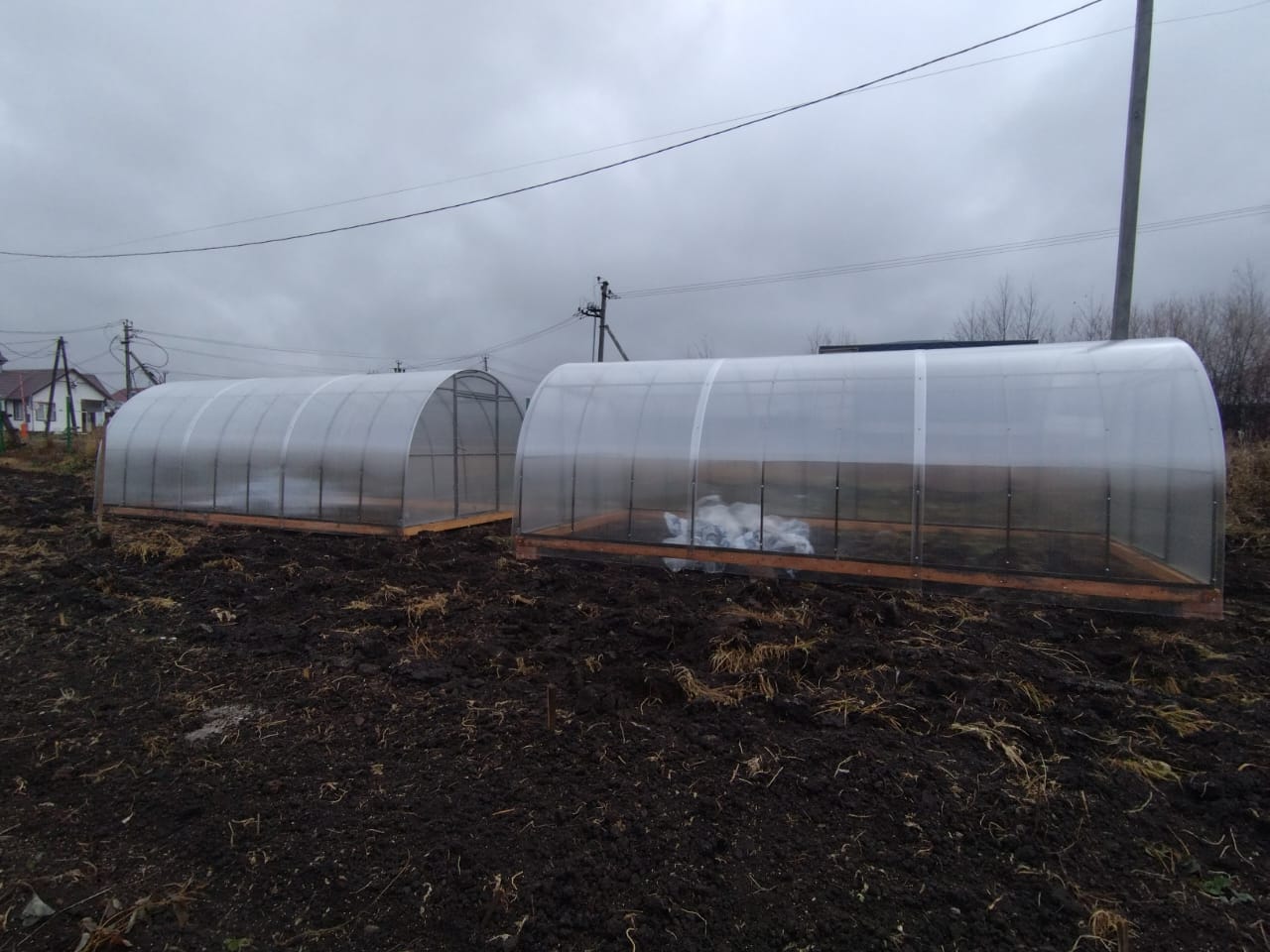 1. Расстояние между дугами составляет 65 сантиметров, что обеспечивает прочность и надёжность конструкции даже в зимний период.