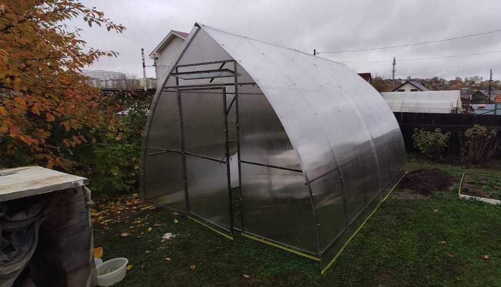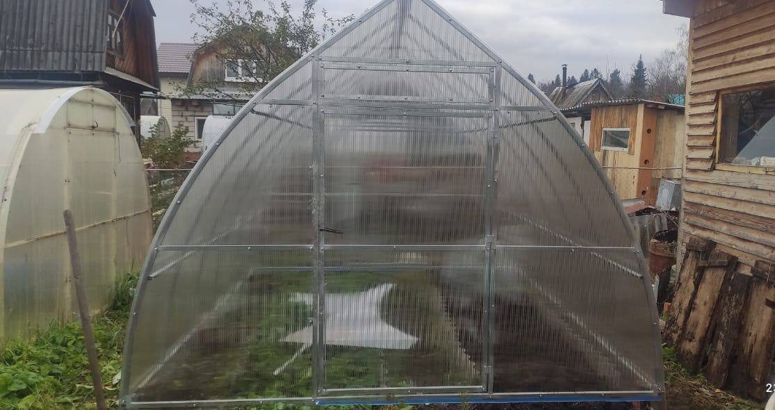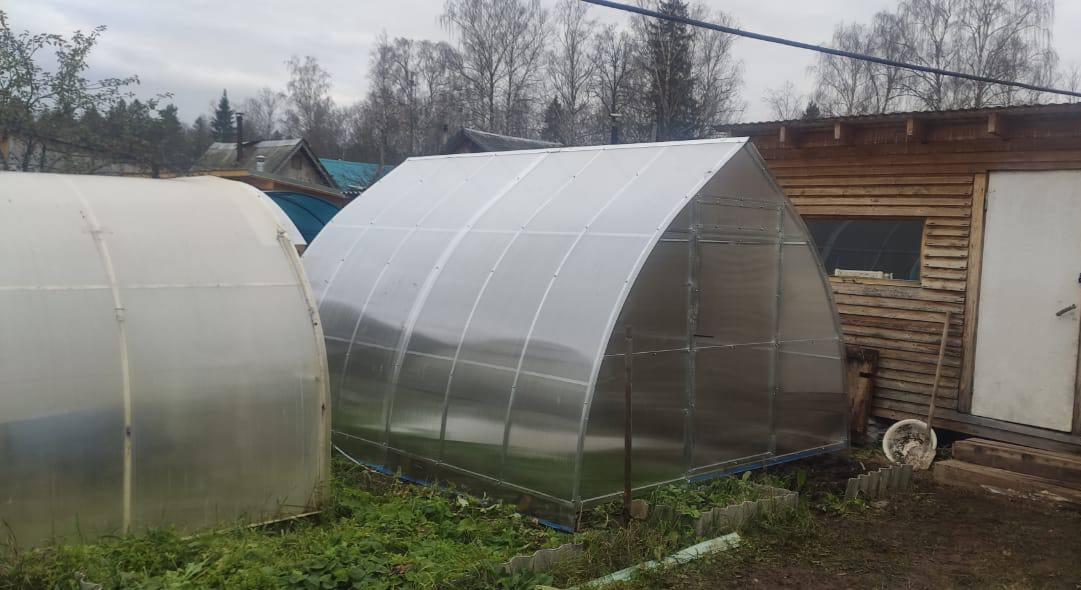 Теплица усиленная двойная дуга , расстояние между дугами составляет 65 см, что гарантирует прочность конструкции даже в зимний период.